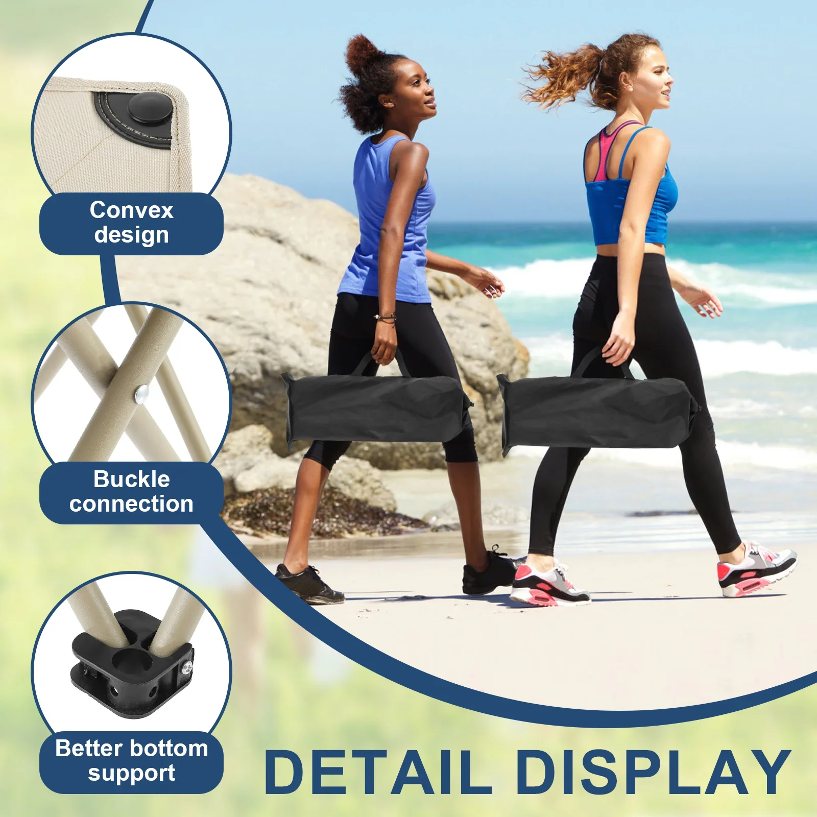 Product Material: The camping stool is made of oxford cloth and metal, and its four legs provide strong support, making it have a weight capacity of up to 180 kg, which is enough to bear the weight of an adult. The folding stool is covered with non slip bottom and raised point design to provide strong grip and stable structure
